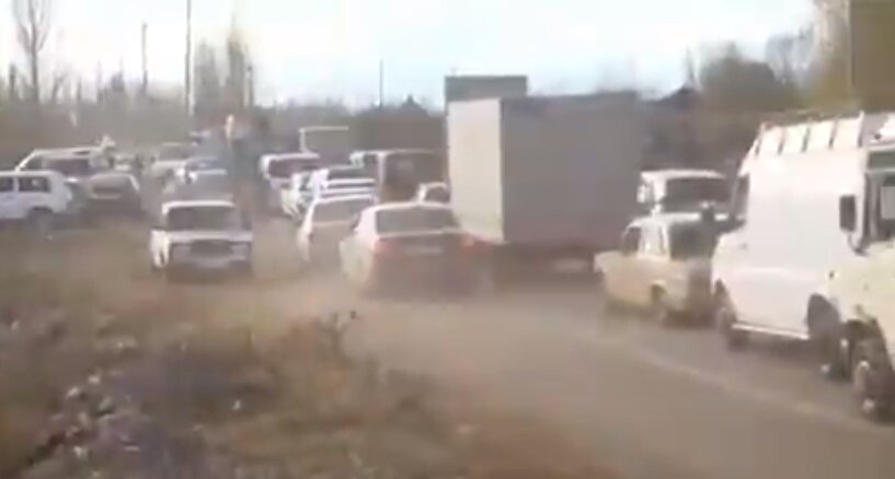 Ранее большая колонна гражданских автомобилей образовалась на выезде из города Шуши, который перешел под контроль Азербайджана в результате боевых действий.